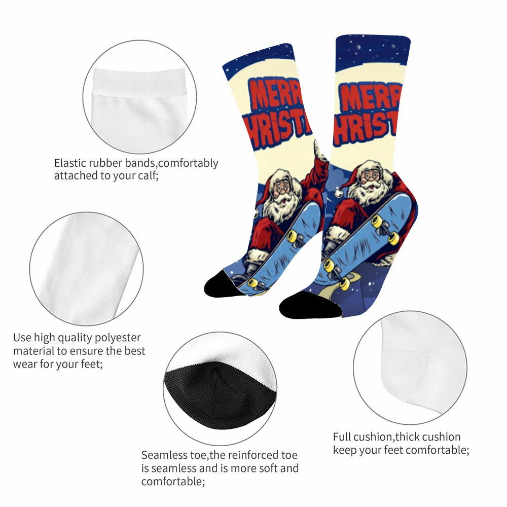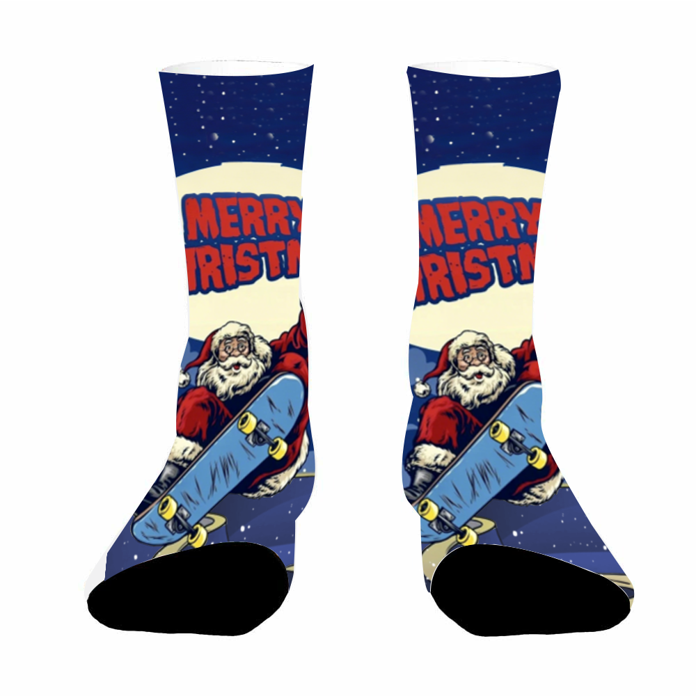 Cool Skate Santa Christmas Mid-Calf Socks (Unisex)